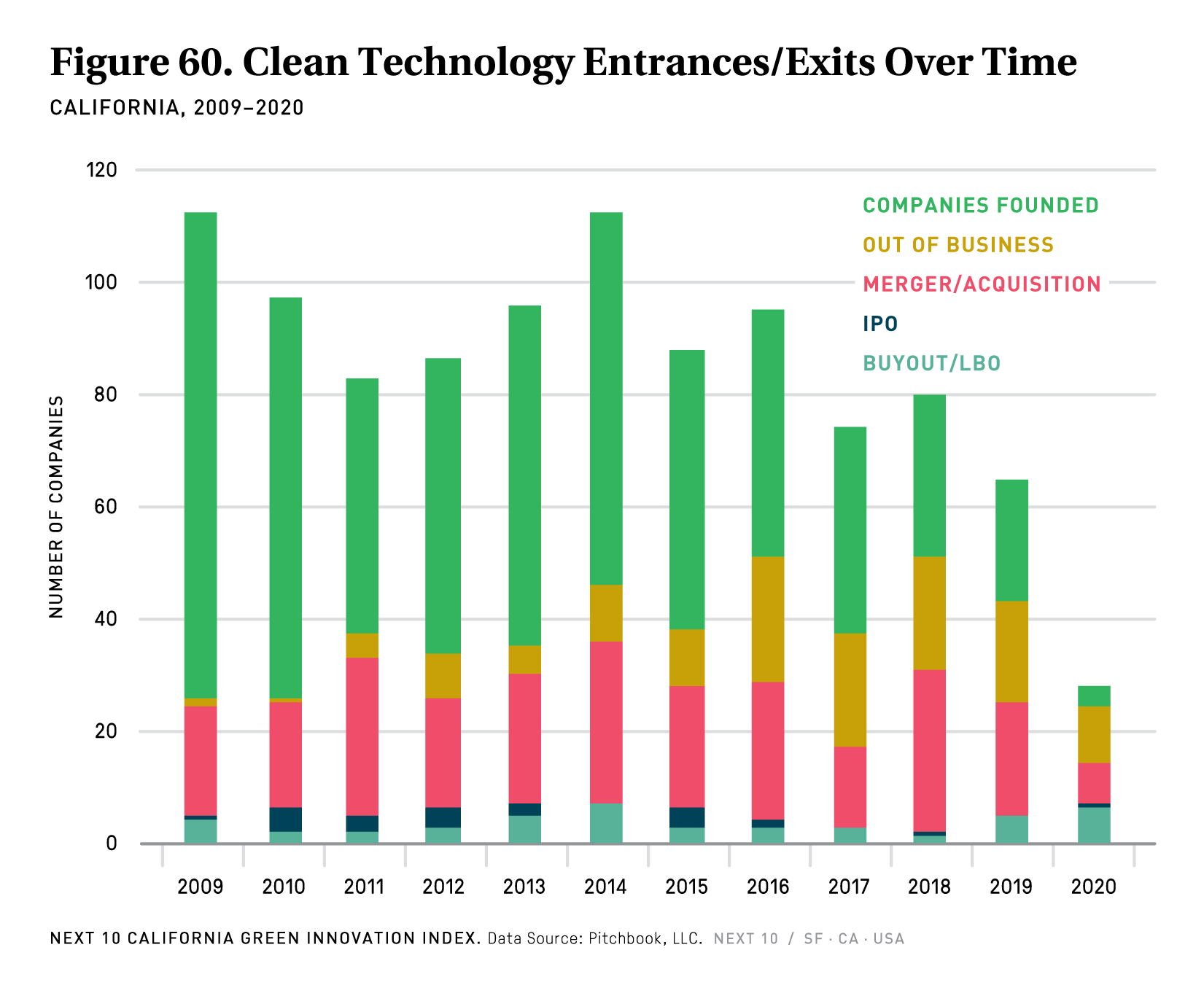 - Compared to 2018, the dollar amount investment in California clean tech firms decreased significantly in 2019 (-39%), totaling $3.1 billion —with $1.25 billion of that total investment attributed to a single deal from Faraday Future, a leading electric vehicles company.