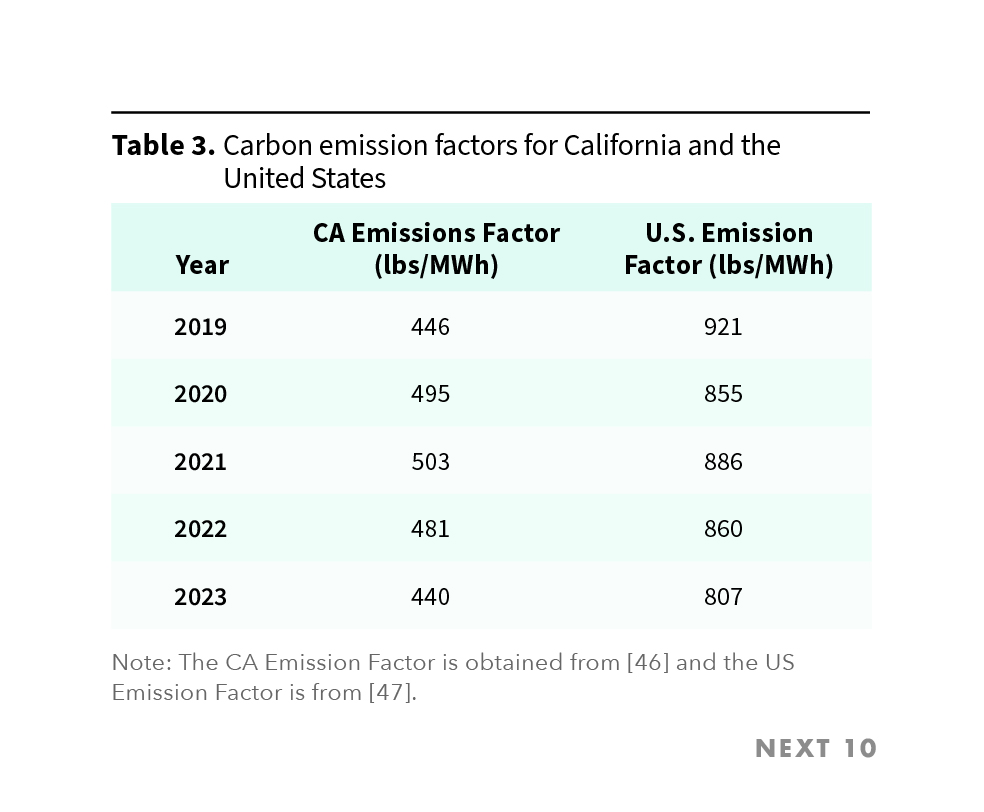 - The “CA-US Ratio” metric reveals that in 2019 California data centers emitted just 48.43% of the carbon they would have under the national average intensity, highlighting the importance of California’s renewable energy portfolio.