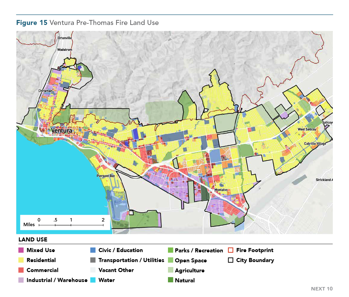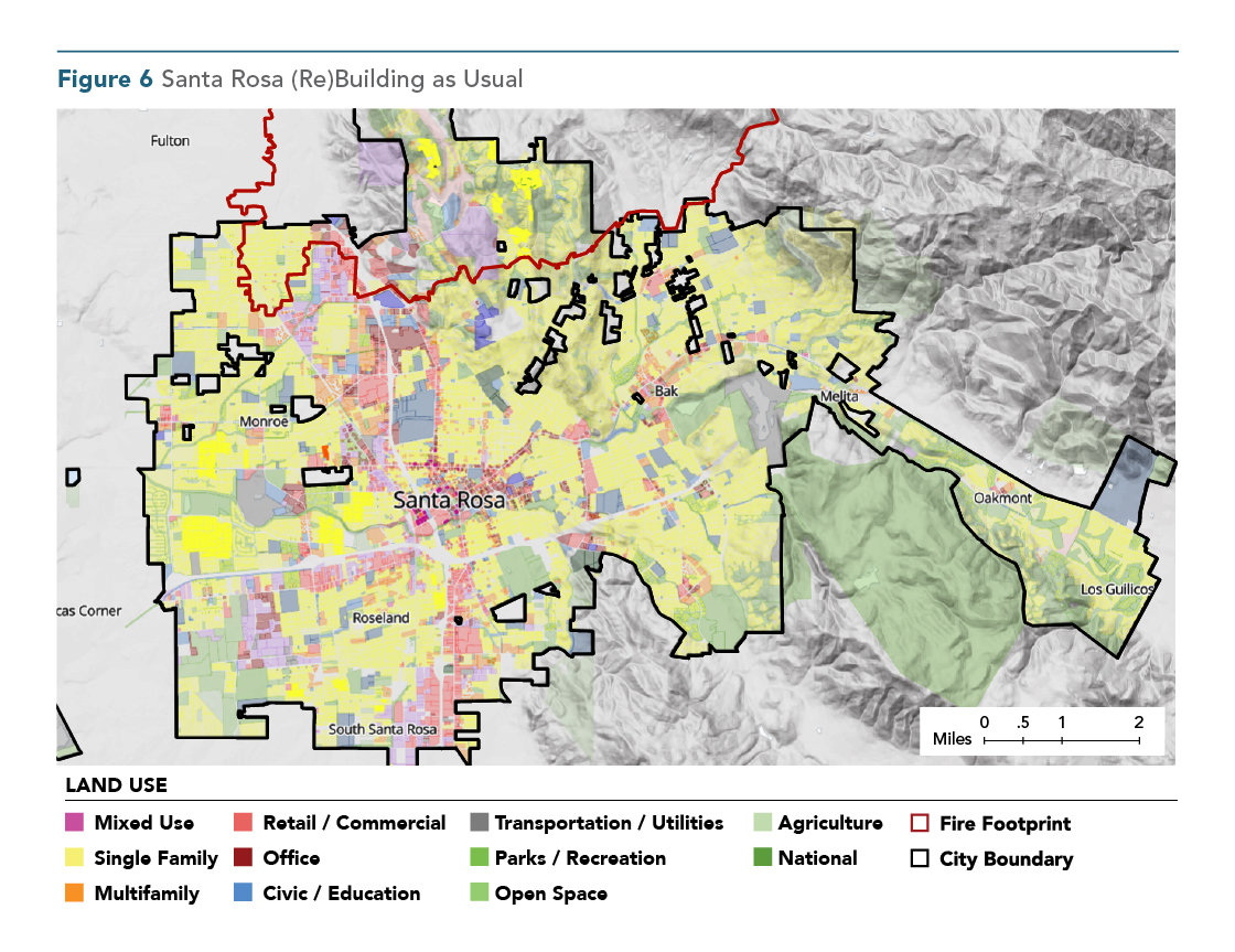 - While rebuilding after a fire will create construction jobs and increase economic output in any planning scenario, “Resilient Nodes” offered the most economic benefit: supporting about 96,000 jobs and $7 billion in economic output in Santa Rosa, supporting 57,000 jobs and $8.4 billion in Paradise, and supporting nearly 37,000 jobs and $5 billion in increased economic output in Ventura.